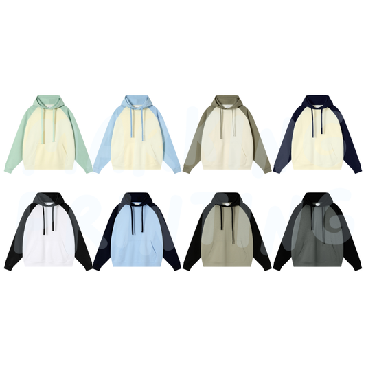 MT55018 重磅撞色插肩拉鍊連帽衛衣
