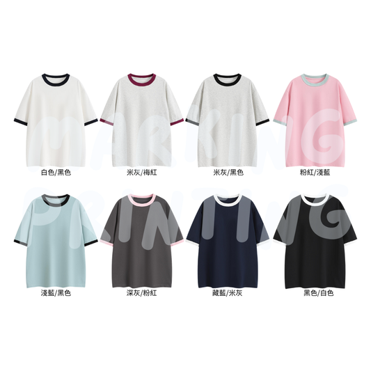 MTG34 260克重磅撞色插肩V領短袖TEE