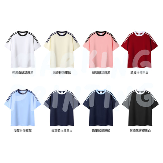 MT7716 250g heavyweight contrast color line drop shoulder short sleeve TEE