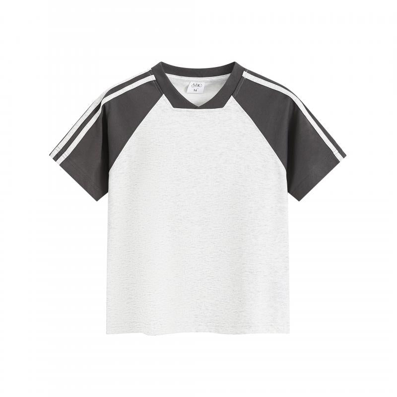 MTG34F 260g heavyweight women's contrast color raglan V-neck short-sleeved TEE