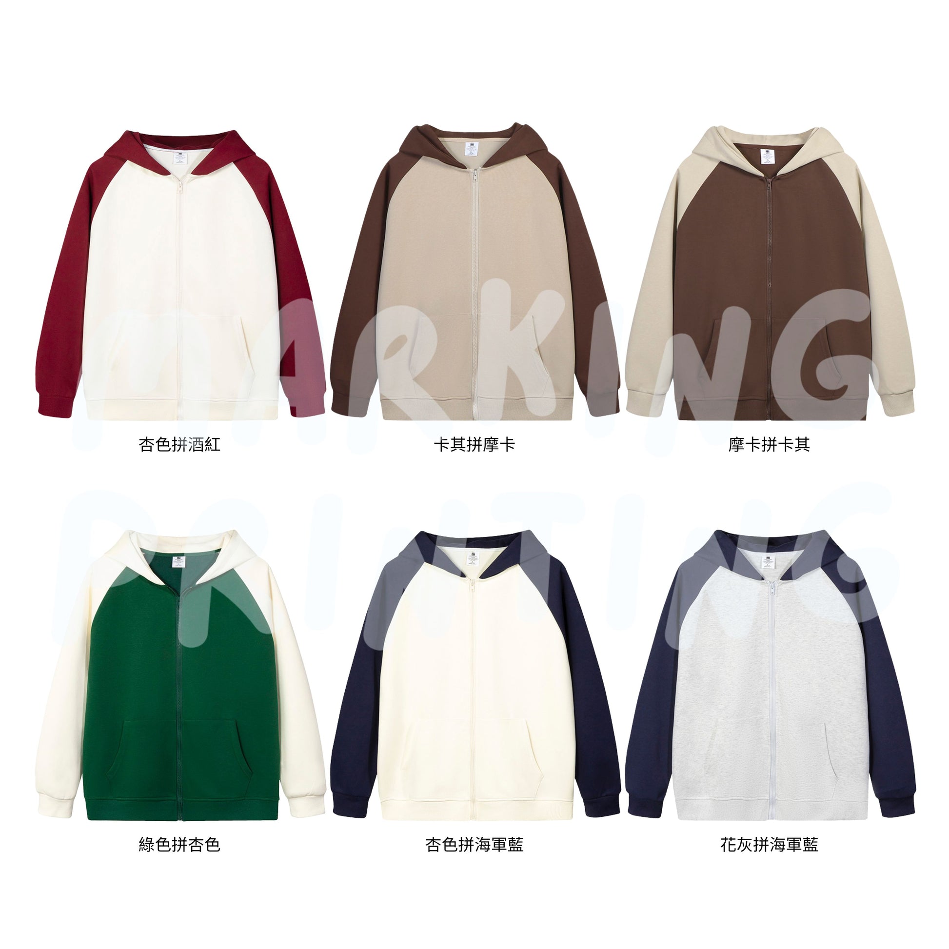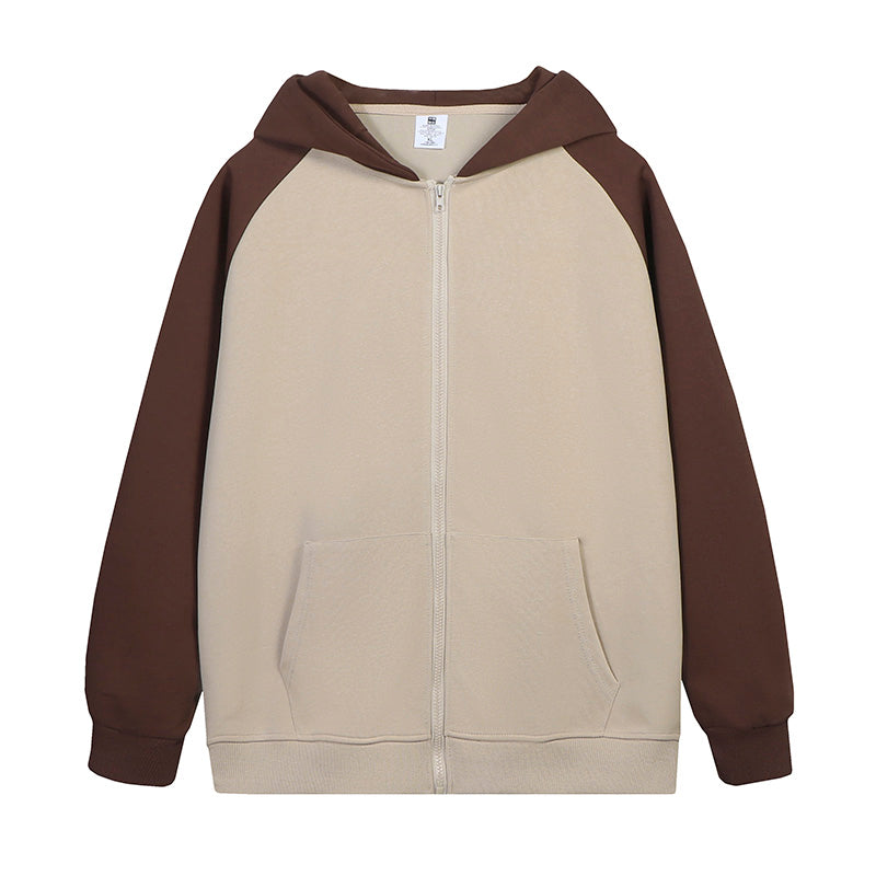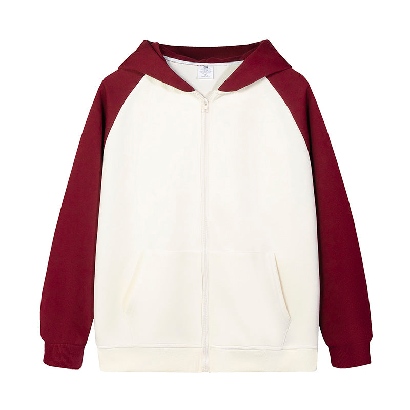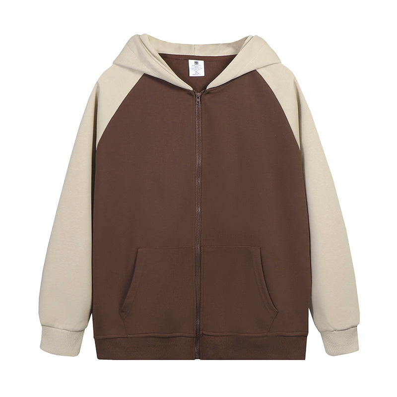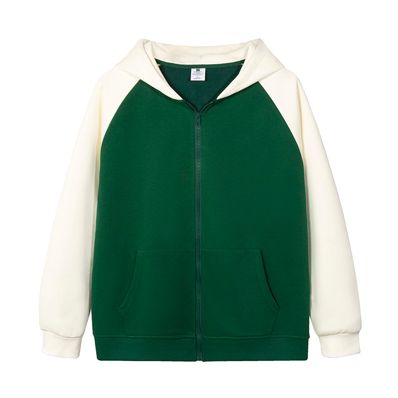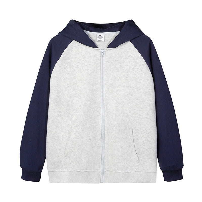 MTD23 拼色插肩拉鍊連帽衛衣
