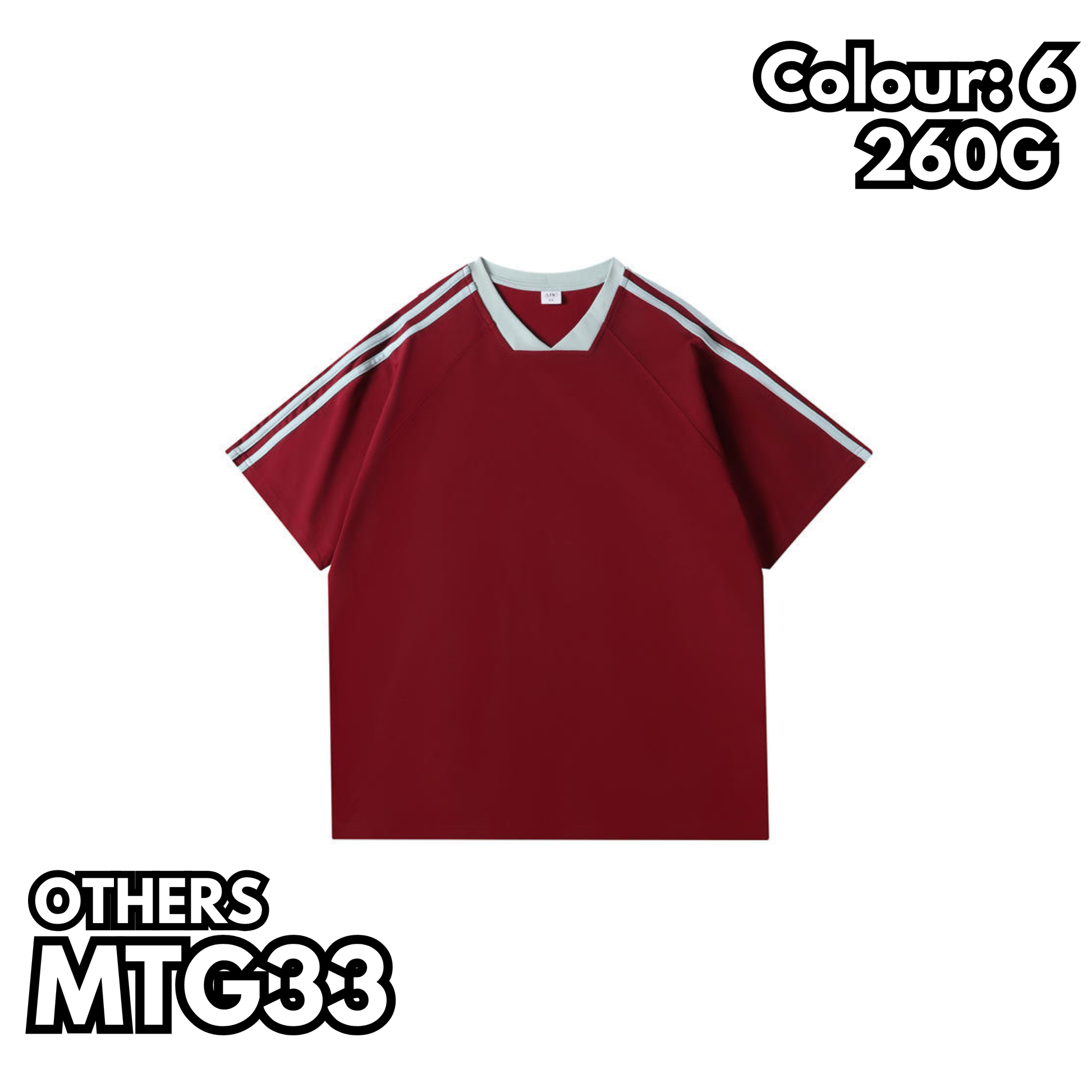 MTG33 260克重磅條紋插肩V領短袖TEE